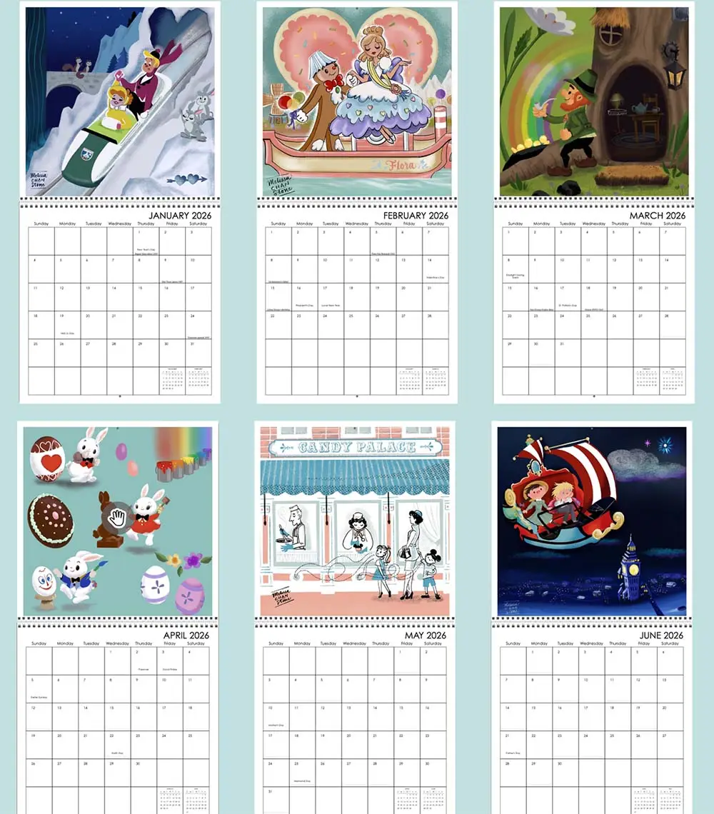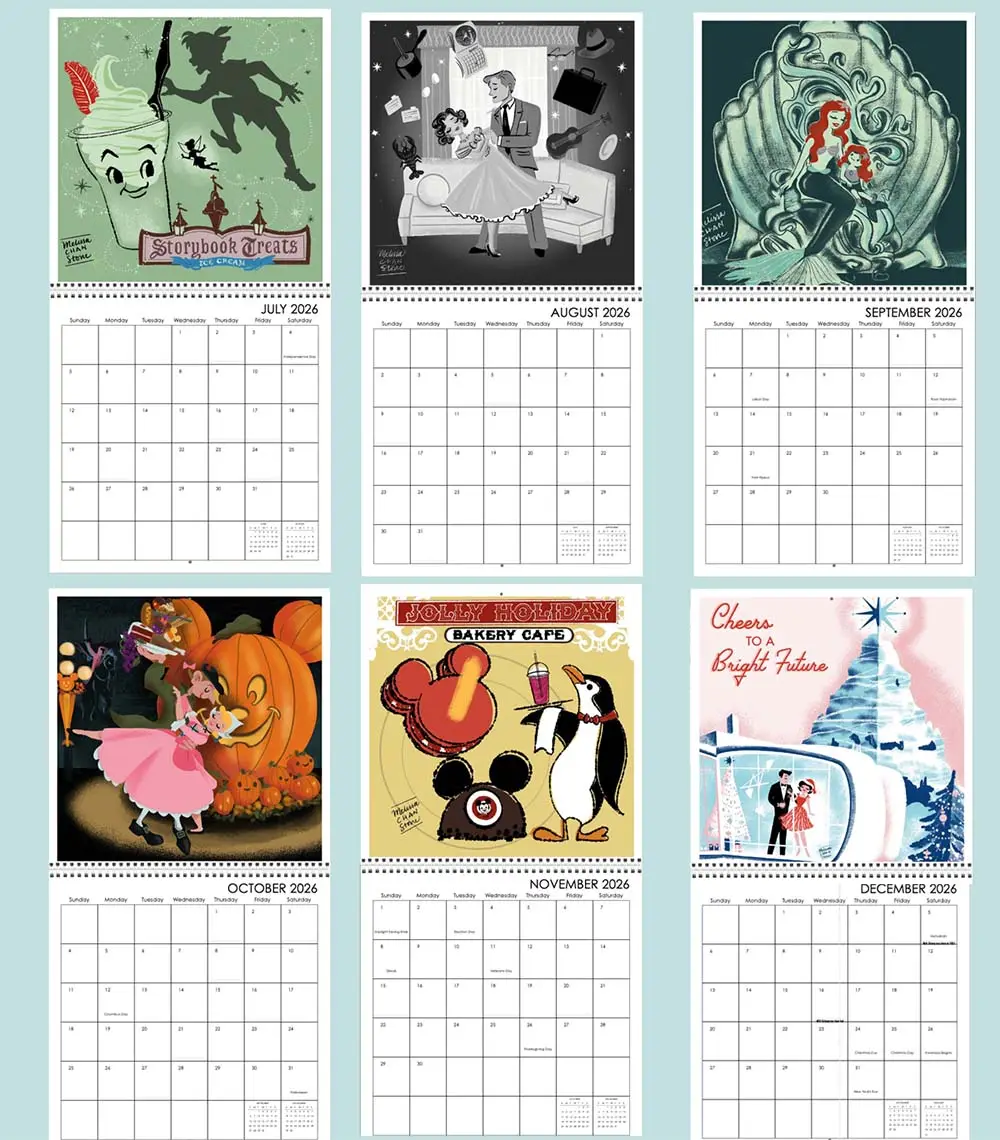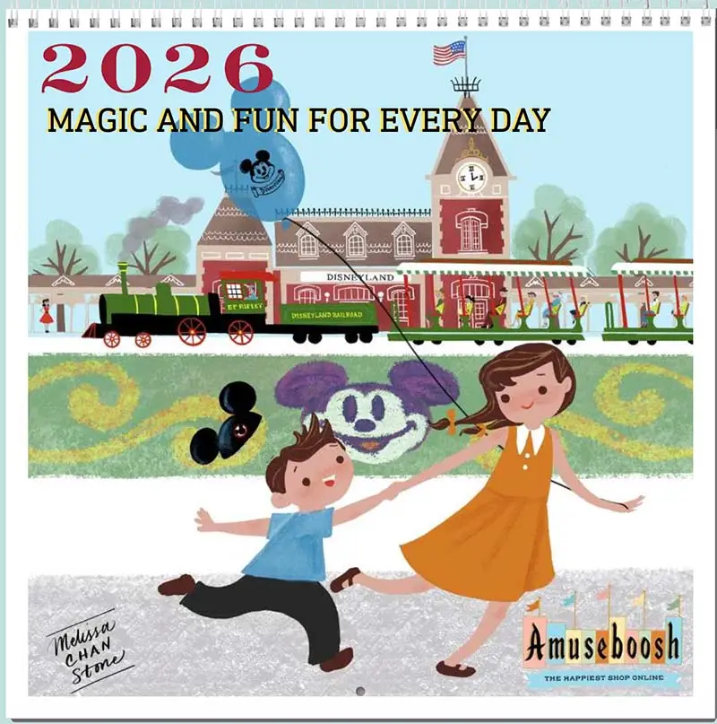 Bring magic and fun to your home of office every single day of 2026! With a cover featuring two excited youths racing through Disneyland’s Main Entrance, this 12″x12″ 12-month calendar features artwork by Melissa Chan Stone, based on her love for Disney Parks theme park history, memories and attractions.
