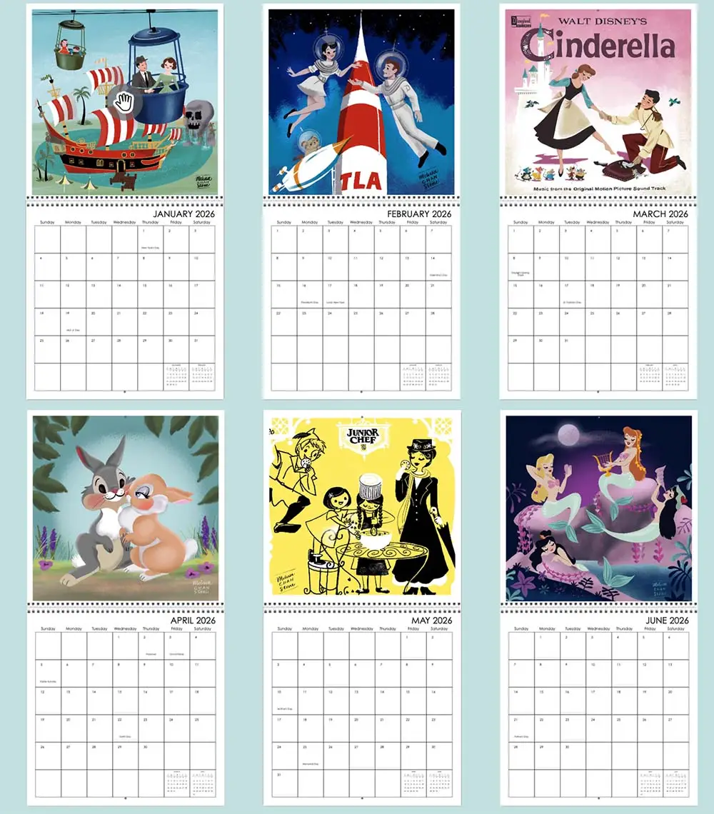 Bring magic and fun to your home of office every single day of 2026! With a cover featuring Tink sprinkling magic over Sleeping Beauty’s castle, this 12″x12″ 12-month calendar features artwork by Melissa Chan Stone, based on her love for Disney Parks theme park history, memories and attractions.